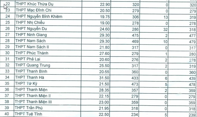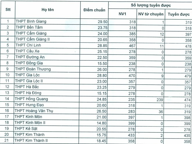 Điểm chuẩn vào các trường THPT công lập của Hải Dương như sau: