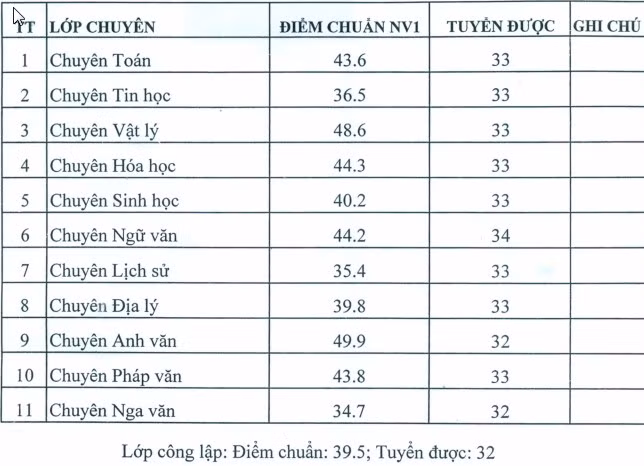 Theo đó, điểm chuẩn vào trường THPT chuyên Nguyễn Trãi như sau: