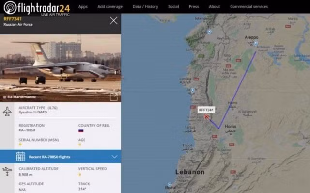 Theo trang web theo dõi chuyến bay Flight Radar 24, một máy bay chở hàng chiến lược Il-76 và một máy bay Tu-154M của Nga đã tới Syria vào tuần này.