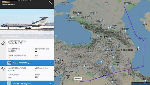 Một số hình ảnh từ trang web Flight Radar 24 cho thấy đường đi của máy bay Nga tới Syria: