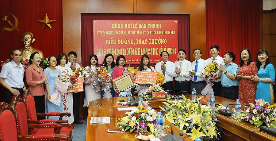 Trước đó, Hải Phòng đã trao phần thưởng cho các em Trịnh Văn Hoàn- HCB Olympic Toán quốc tế số tiền 400 triệu đồng, Trần Việt Hoàng- HCĐ Olympic Toán quốc tế số tiền 300 triệu đồng.