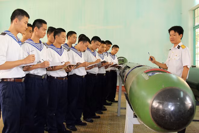 Một buổi thực hành vũ khí dưới nước của các chiến sĩ Hải quân. Mỗi tập thể, cá nhân dù trên đất liền hay ngoài biển đảo xa xôi đều quyết tâm huấn luyện giỏi, kỷ luật nghiêm, hoàn thành tốt mọi nhiệm vụ, góp phần xây dựng Quân chủng thực sự chính quy, tinh nhuệ, hiện đại.