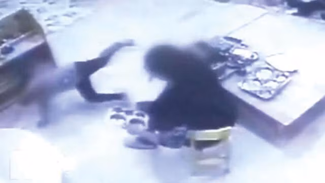 Giáo viên 33 tuổi đánh mạnh khiến em học sinh ngã ra xa - Ảnh: YouTube