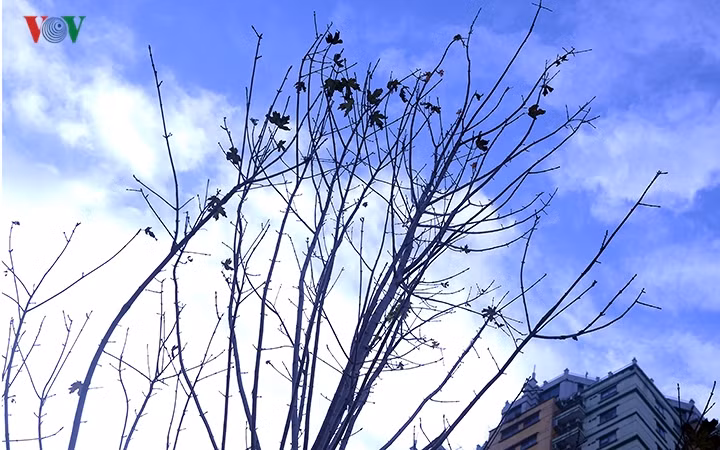 | Ghi nhận của phóng viên VOV.VN vào ngày 14/12, những hàng Phong trên các tuyến phố Nguyễn Chí Thanh, Trần Duy Hưng lá đã rụng gần hết. |