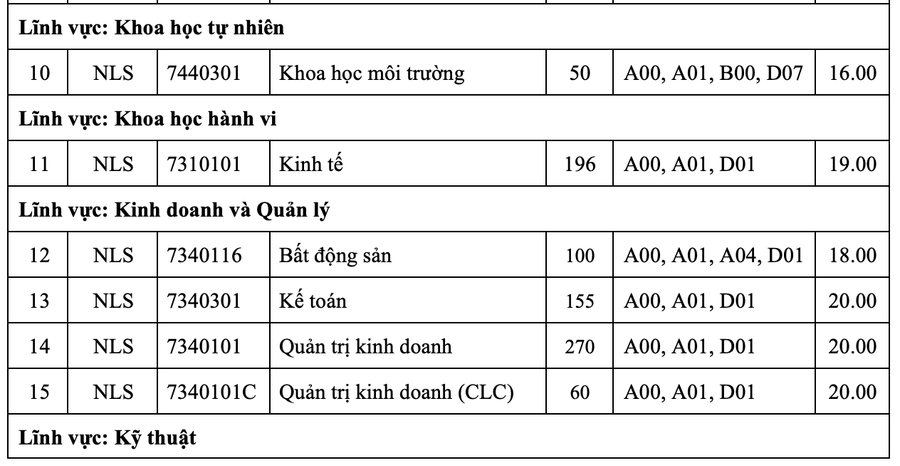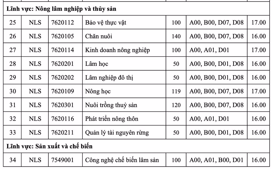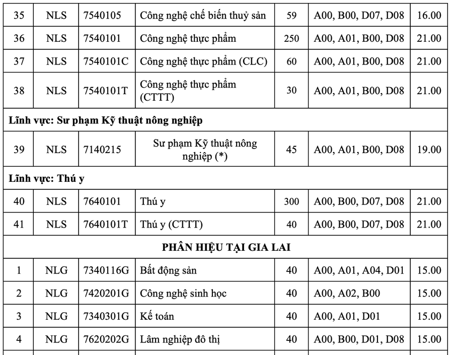 Với ngành Sư phạm Kỹ thuật nông nghiệp, Giáo dục Mầm non (trình độ đại học, cao đẳng), ngưỡng đầu vào theo quy định của Bộ GD&ĐT.