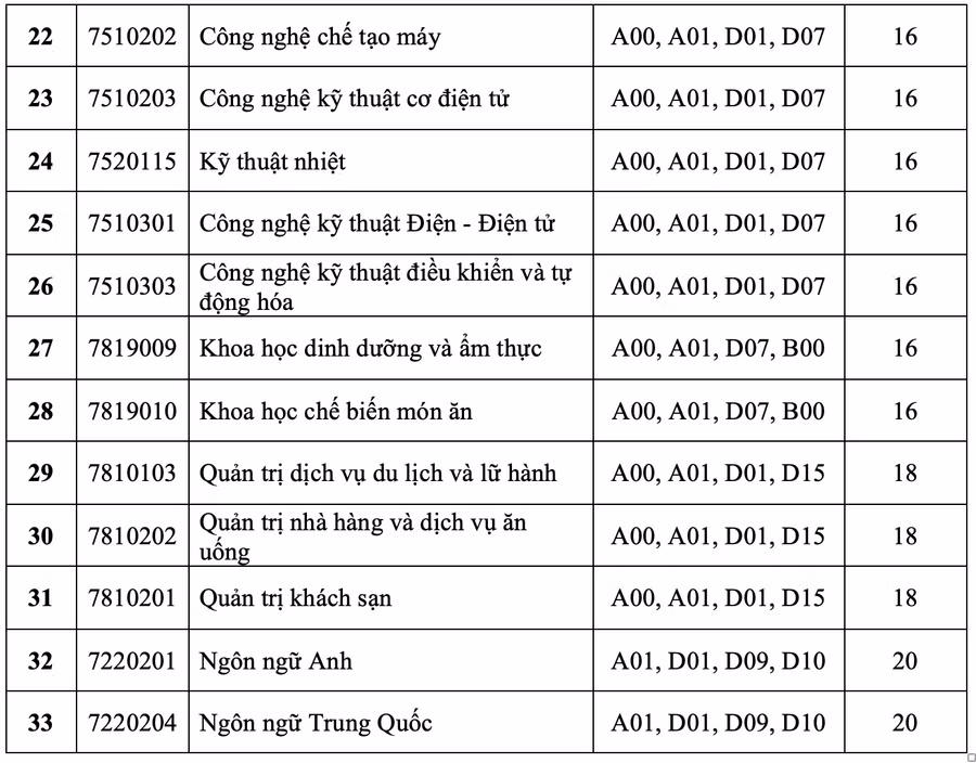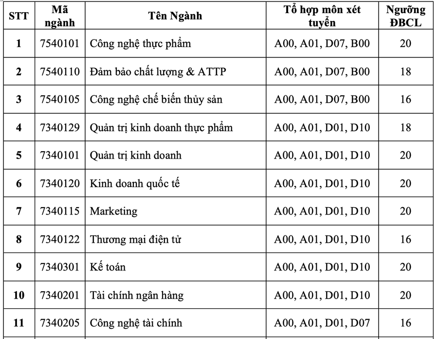 Trong số 33 ngành, chương trình đào tạo, có 9 ngành lấy điểm sàn là 20. Những ngành còn lại lấy điểm sàn 16-18.