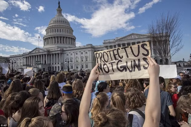 Học sinh trên khắp nước Mỹ đã tham gia vào một cuộc diễu hành lớn để tưởng niệm 17 người thiệt mạng trong vụ xả súng ở Parkland, Flordia một tuần trước đây.