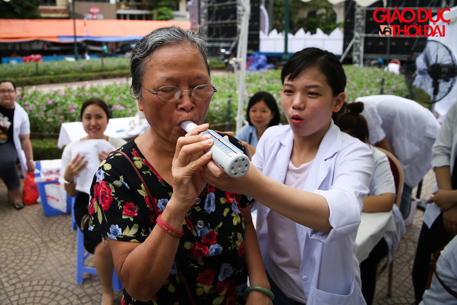 | Bác sĩ Nguyễn Hoàng Đạo, Khoa thăm dò và phục hồi chức năng, BV phổi T.Ư cho biết, ngày hôm nay BV đã đưa gần 30 y, bác sĩ, điều dưỡng và kỹ thuật viên đến chương trình để thăm khám miễn phía cho tất cả mọi người. |