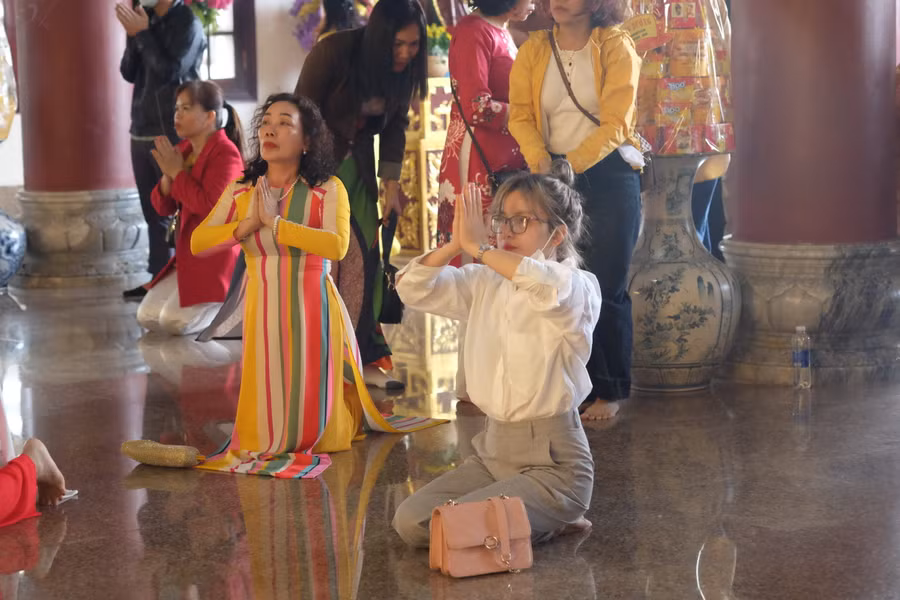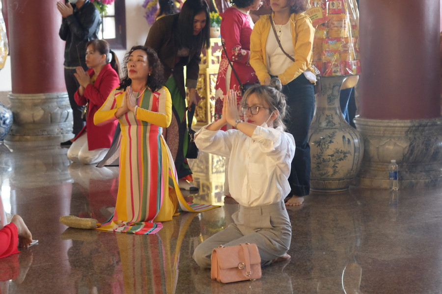 | Cầu nguyện một năm bình an và hạnh phúc. Ảnh: Hoàng Vinh. |