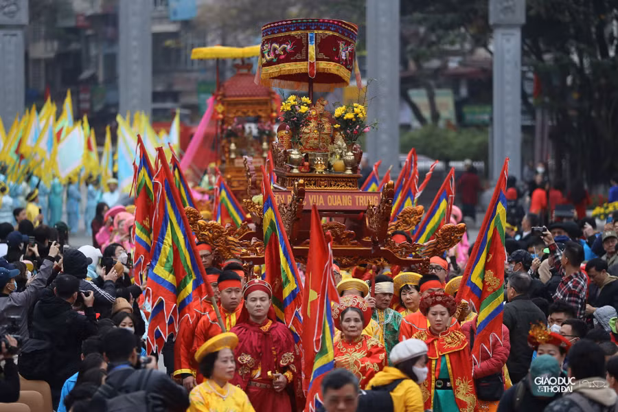 | Từ sáng sớm, các đoàn tham gia chương trình lễ kỷ niệm đã thực hiện nghi thức tế lễ, rước kiệu Hoàng đế Quang Trung và Hoàng hậu Lê Ngọc Hân, thu hút đông đảo nhân dân trong vùng và khách thập phương tham dự. |