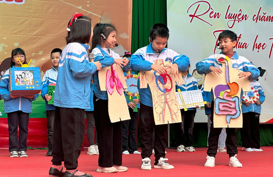 | Tiết mục văn nghệ chào mừng Ngày hội STEM của học sinh Trường Tiểu học Nguyễn Văn Trỗi (TP Thanh Hóa). (Ảnh: TH) |