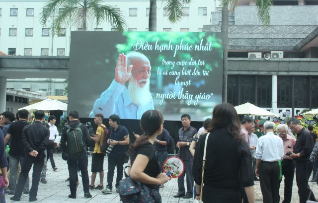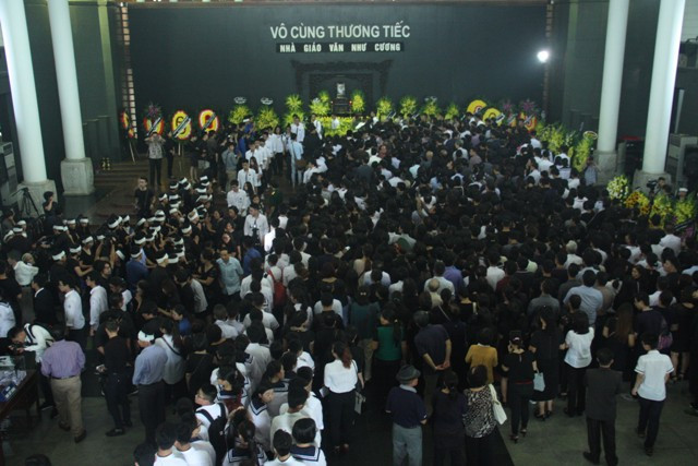 Những dòng người vào viếng dường như bất tận. Khung thời gian 2 tiếng có vẻ không đủ để ai cũng được nhìn người thầy giáo đáng kính lần cuối cùng.