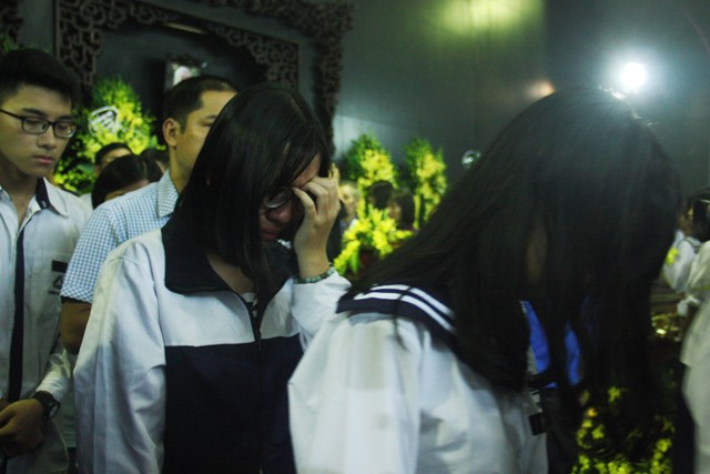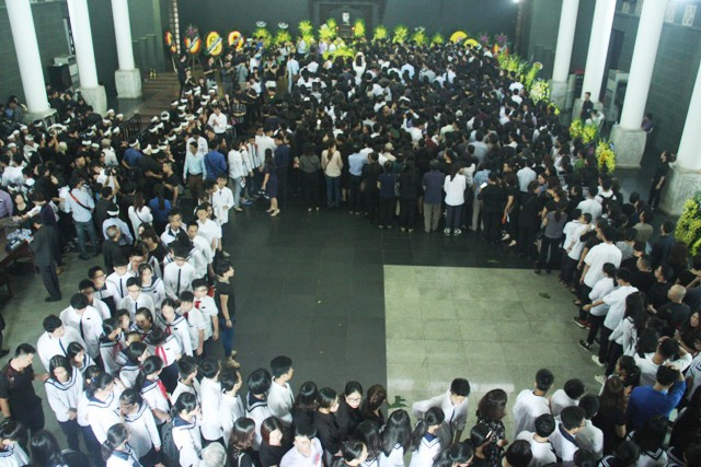| Từ sớm, học sinh Lương Thế Vinh đã có mặt tại nhà tang lễ |