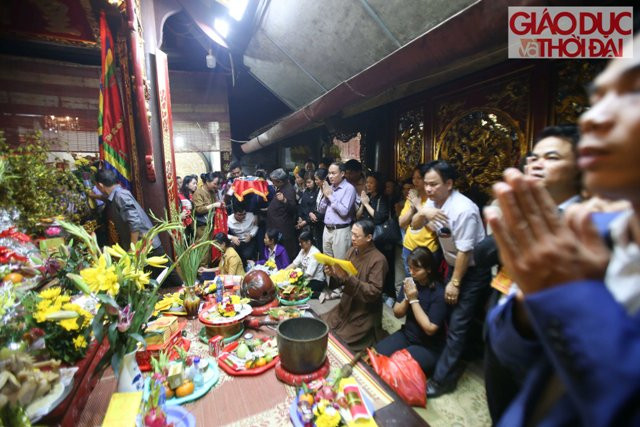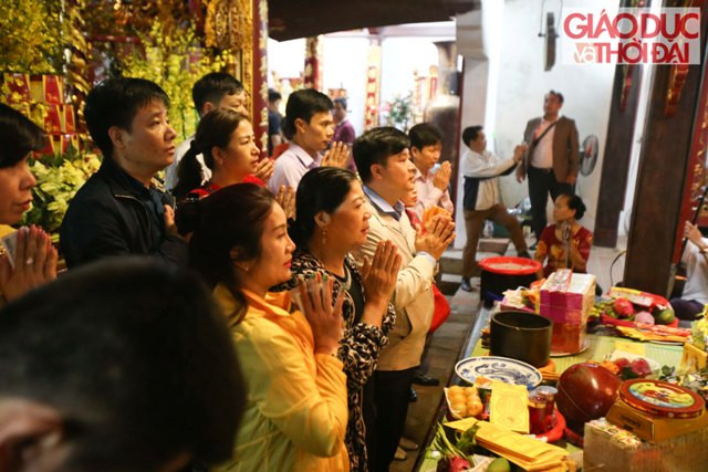 | Trong khu vực đền Thiên Trường, đền Cố Trạch... nhiều người chắp tay dâng hương từ rất sớm. |