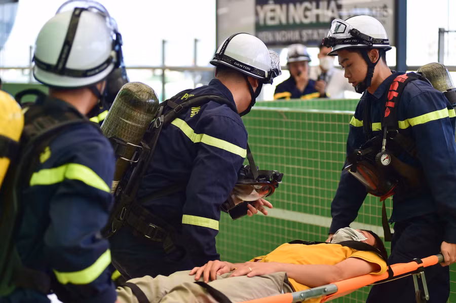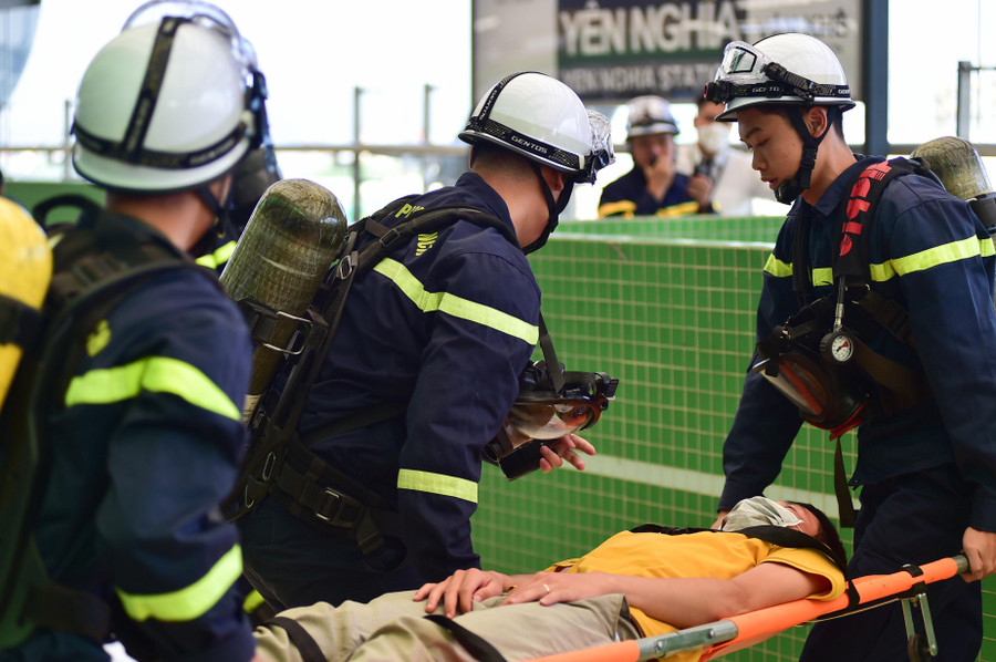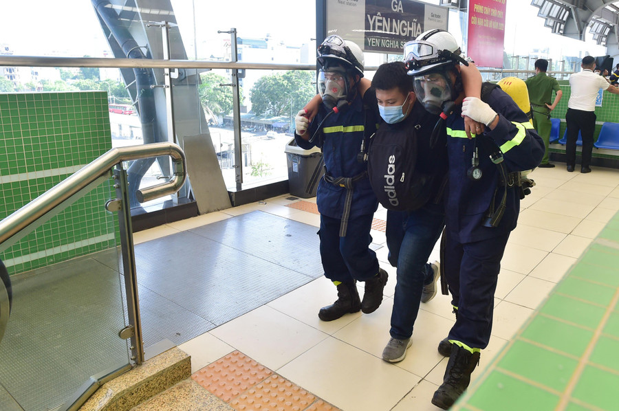 | Sau hơn 20 phút triển khai phương án diễn tập, các lực lượng Phòng cháy chữa cháy và cứu hộ, cứu nạn đã hoàn thành tốt việc phòng chống cháy nổ tại Nhà ga Yên Nghĩa và đưa toàn bộ những hành khách mắc kẹt đi cấp cứu. |