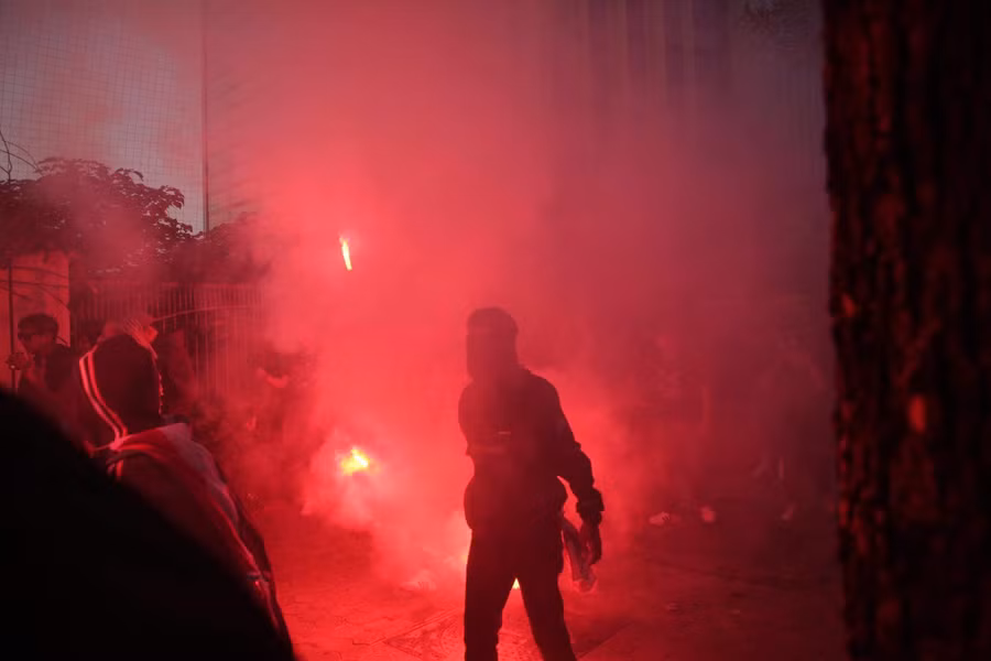 | Nhưng trong đoàn CĐV Thái Lan có một số CĐV đã đốt pháo sáng ngay trên đường tiến vào cổng sân Mỹ Đình. |