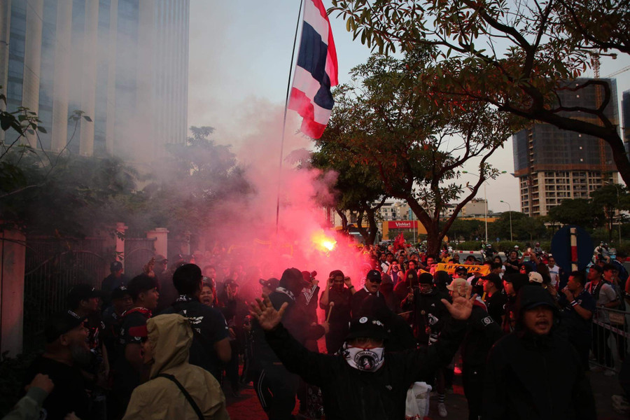 Rất nhiều CĐV của đội tuyển Thái Lan đã có mặt sớm tại sân. Đặc biệt, trước lúc vào bên trong sân, các CĐV Thái Lan đã tranh thủ check-in làm kỷ niệm cũng như hát vang những bài truyền thống.