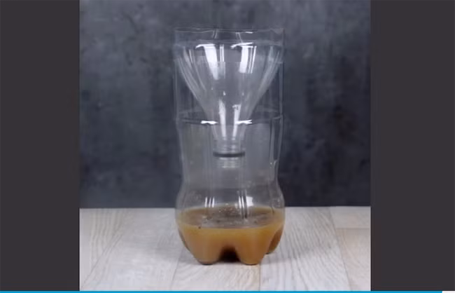 Úp ngược nửa thân trên của chai nước ngọt vào phần thân dưới chứa hỗn hợp nước đường nâu và men khiến cho lũ côn trùng không còn đường thoát.