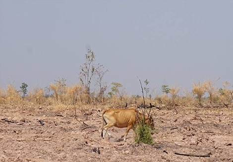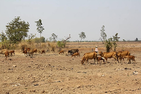 | Ruộng đồng khô khốc vì nắng hạn đã khiến đàn trâu, bò trên địa bàn tỉnh Đắk Lắk khan hiếm nguồn thức ăn trầm trọng. |