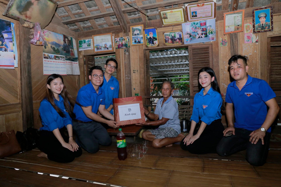 | Đoàn Tình nguyện trao tặng các suất quà tổng trị giá 10 triệu đồng cho các gia đình chính sách, thương bệnh binh, người có công với cách mạng. |