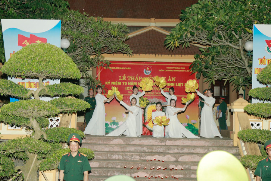 Tối ngày 26/7, tại Nghĩa trang liệt sĩ huyện Mai Châu, Ban Thường vụ Huyện đoàn phối hợp cùng Đoàn tình nguyện Học viện Thanh thiếu niên Việt Nam đã tổ chức Lễ thắp nến tri ân với sự tham dự của các đồng chí lãnh đạo huyện; các ban, ngành, đoàn thể và hơn 200 đoàn viên thanh niên ở các đoàn cơ sở và chi đoàn trực thuộc Huyện đoàn.