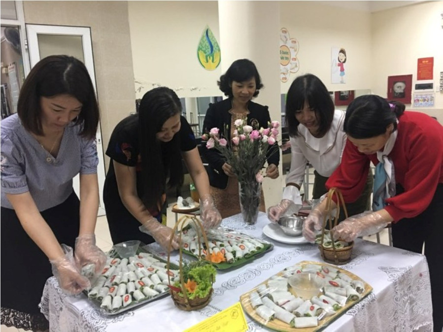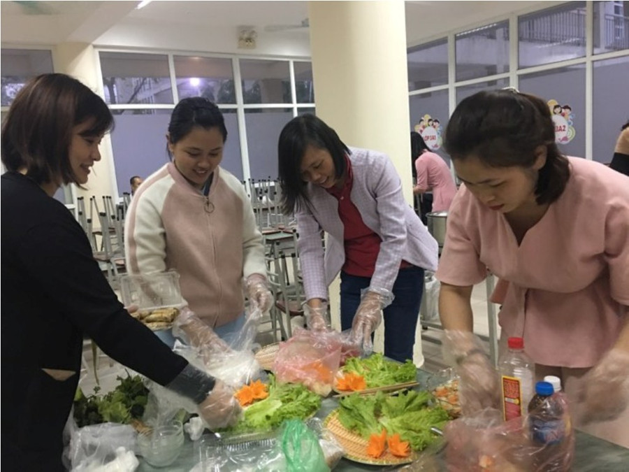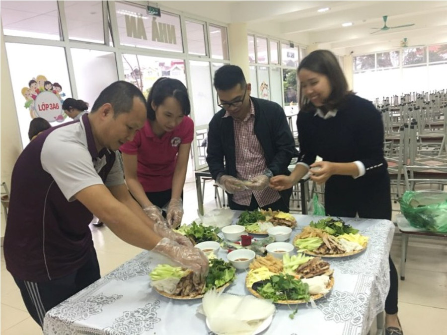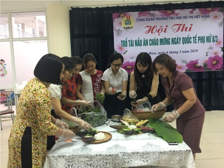 "Các món ăn được các đội tự lựa chọn theo thế mạnh của các thành viên tham gia nhưng phải đảm bảo ngon, đẹp mắt, đủ số lượng cho cả tập thể cùng thưởng thức liên hoan chào mừng. Một công đôi việc, các thầy cô tự tổ chức buổi tiệc chúc mừng nhau ngay sau buổi lên lớp. Ban chấp hành công đoàn nhà trường thực sự rất hài lòng vì đã tổ chức được một hoạt động bổ ích khiến mọi người đều cảm nhận được sự vui vẻ, ý nghĩa và gắn kết", cô Phạm Thị Nga cho biết thêm.