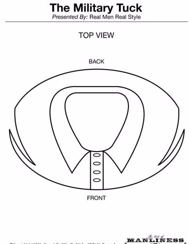 Đây là cách mặc quân phục được dạy trong quân đội. Với cách này, vạt áo sẽ được gấp thành hai vết nhỏ, sau đó mới được đưa vào trong quần, để đảm bảo không có phần áo nào thừa ra trên thân bạn.