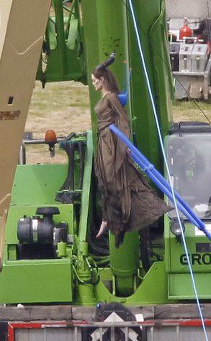 Nhờ có anh thợ điều khiển đai lưng và phông nền xanh đằng sau, Angelina Jolie yên tâm diễn sâu và phô diễn thần thái của mình.
