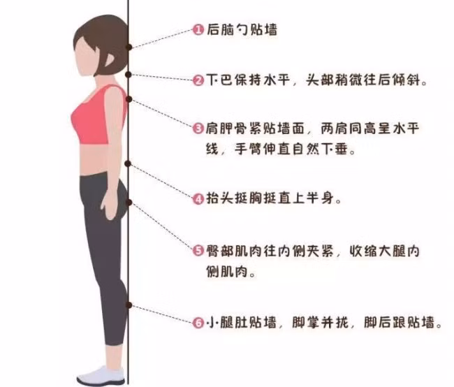 Đứng dựa vào tường có thể đảm bảo cho cột sống ở trạng thái thẳng đứng, bảo đảm cho cơ thể luôn thẳng, đề phòng bệnh vẹo cột sống, có lợi ích cho việc uốn nắn dáng đứng.