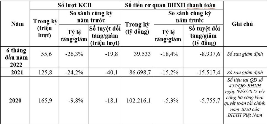Kết quả công tác giám định BHYT năm 2021 và 6 tháng đầu năm 2022, Hệ thống thông tin giám định BHYT đã ghi nhận giảm trừ chi phí KCB BHYT như sau:
