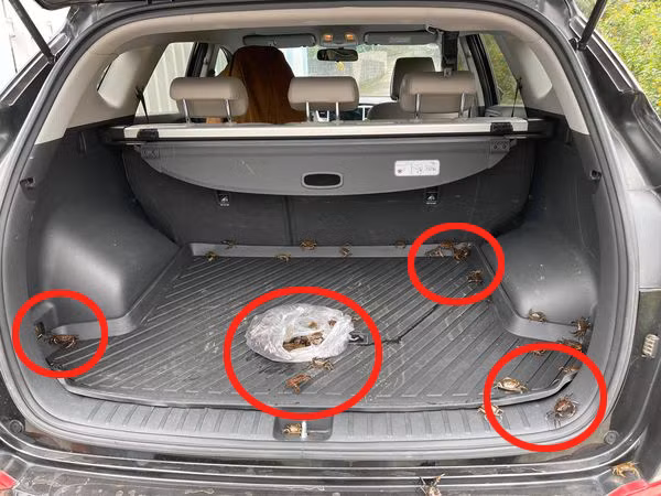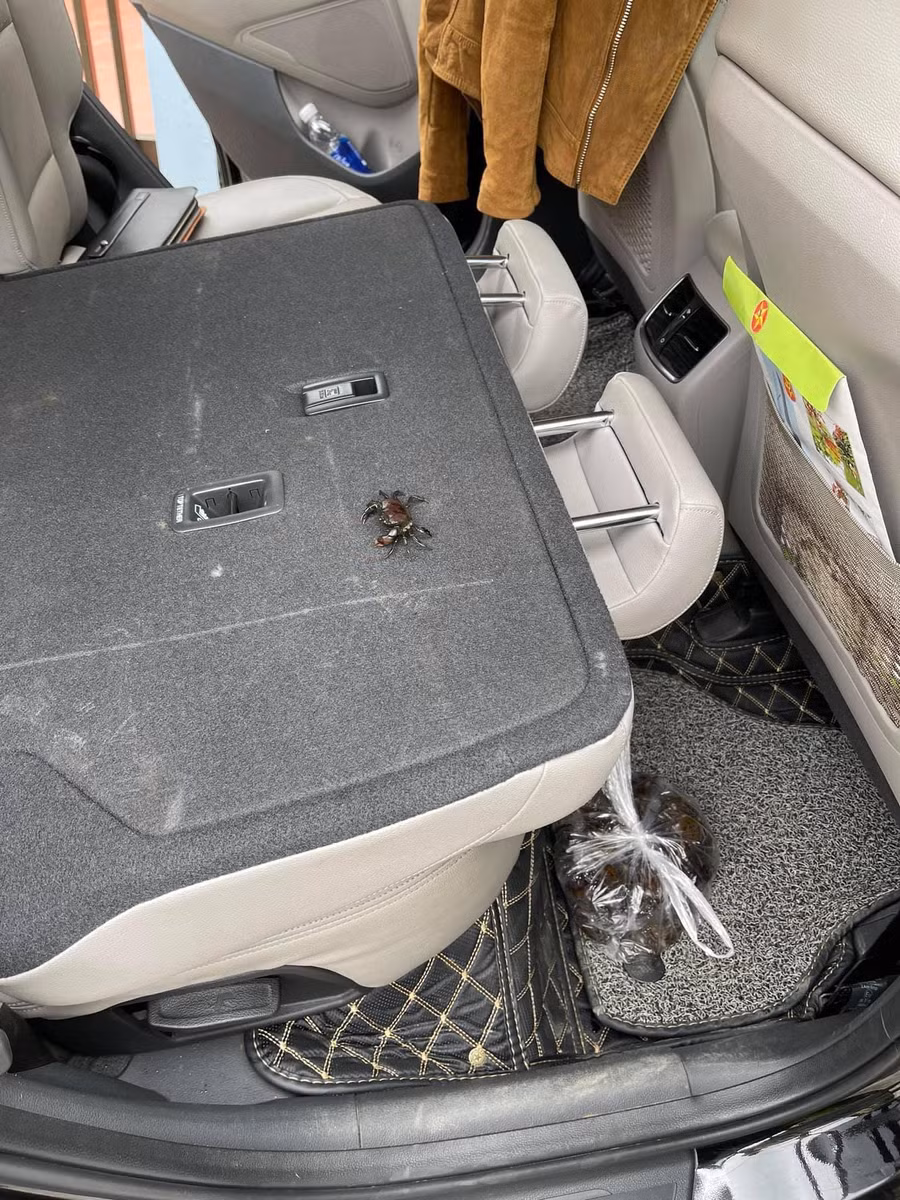 Cô gái khóc thét khi thấy đám cua mình mua bò lổm ngổm khắp xe ô tô.