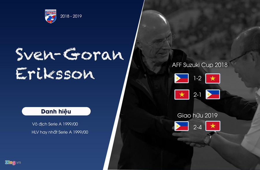 Cựu HLV trưởng tuyển Anh đã 3 lần bại trận dưới tay Park Hang-seo ở AFF Cup và loạt giao hữu trước Asian Cup. Eriksson tài năng, nhưng bóng đá Philippines không có đủ nguồn lực để tận dụng hết khả năng của ông.