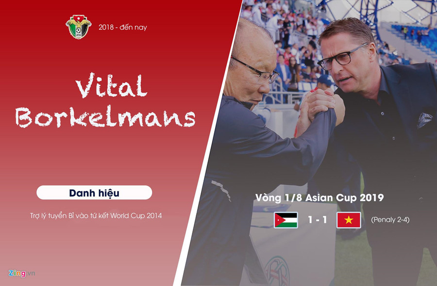 Làm trợ lý tuyển Bỉ trong giai đoạn 2012-2016, ông Borkelmans đã góp phần dựng nên “Thế hệ vàng” hiện tại của bóng đá Bỉ. Huấn luyện Jordan khi ấy cực mạnh sau vòng bảng Asian Cup, thắng cả Australia và Syria, Borkelmans vẫn không thể vượt qua Park Hang-seo.