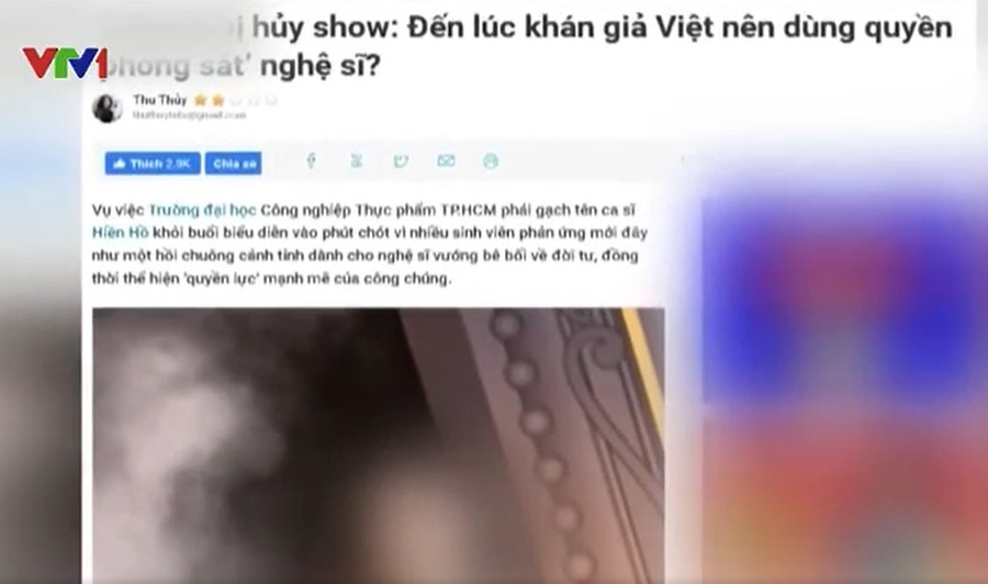 Phát ngôn, ứng xử lệch chuẩn, thiếu văn hóa, hay hành vi vi phạm pháp luật của nghệ sĩ, người của công chúng sẽ gây tác hại lớn, đặc biệt với lứa tuổi thanh thiếu niên", trích phóng sự trên VTV.