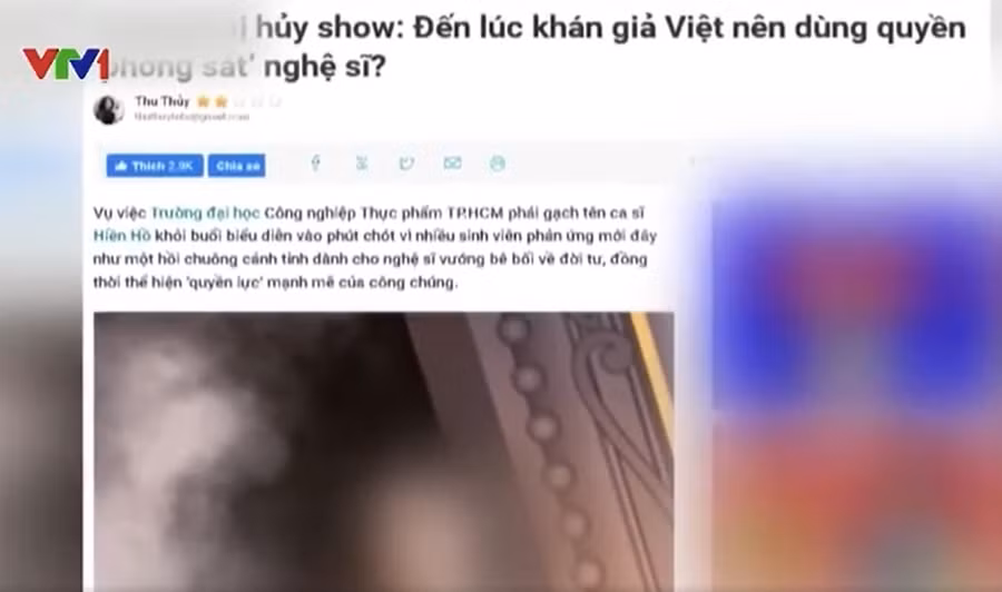 "Cuối năm 2022, một nữ ca sĩ đã bị hủy show diễn trong ngày hội của trường đại học ở TP. HCM. Theo báo Thanh niên, phần lớn sinh viên trường tỏ thái độ bất mãn, có bạn chia sẻ 'không thể chấp nhận việc trường mời một ca sĩ dính thị phi quá nhiều, mà nhất là lùm xùm liên quan đến người đàn ông đã có gia đình'.