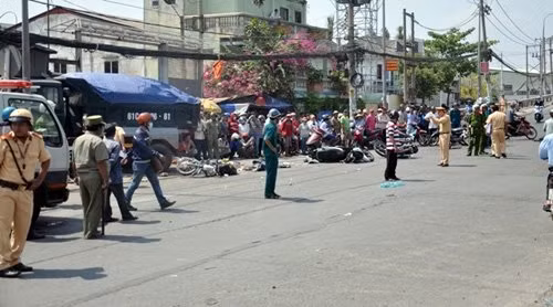 Trước đó, vào khoảng 11 giờ cùng ngày, nhiều người chạy xe máy lưu thông trên đường Lê Đức Thọ hướng từ quận 12 đi Gò Vấp, khi vừa đổ dốc cầu Trường Đai thì bị xe ben biển kiểm soát 61C-106.61 chạy cùng chiều phía sau lao tới tông và cuốn nhiều người cùng phương tiện vào gầm xe.