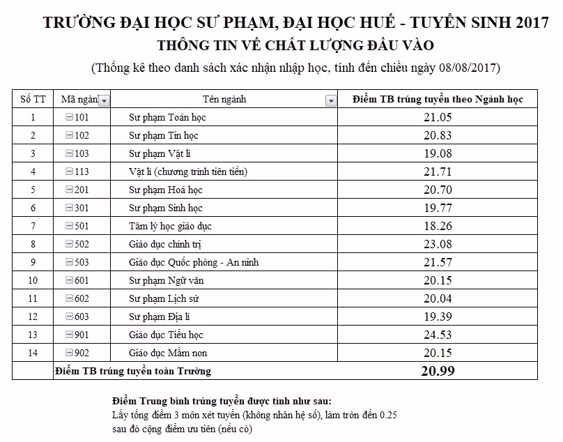 Trong số 14 ngành sư phạm tuyển sinh vào trường, có 10 ngành điểm trung bình trúng tuyển trên 20 điểm, các ngành còn lại điểm trung bình trên 18 điểm, chỉ có 1 ngành 15,75 với chỉ 2 sinh viên.
