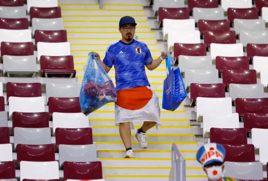 Cụ thể, sau mỗi buổi dự khán người ta luôn thấy hình ảnh đám đông cổ động viên đến từ xứ sở mặt trời mọc ở lại nhặt dọn rác sạch sẽ trên các khán đài ở Qatar, rồi sau đó mới rời đi.