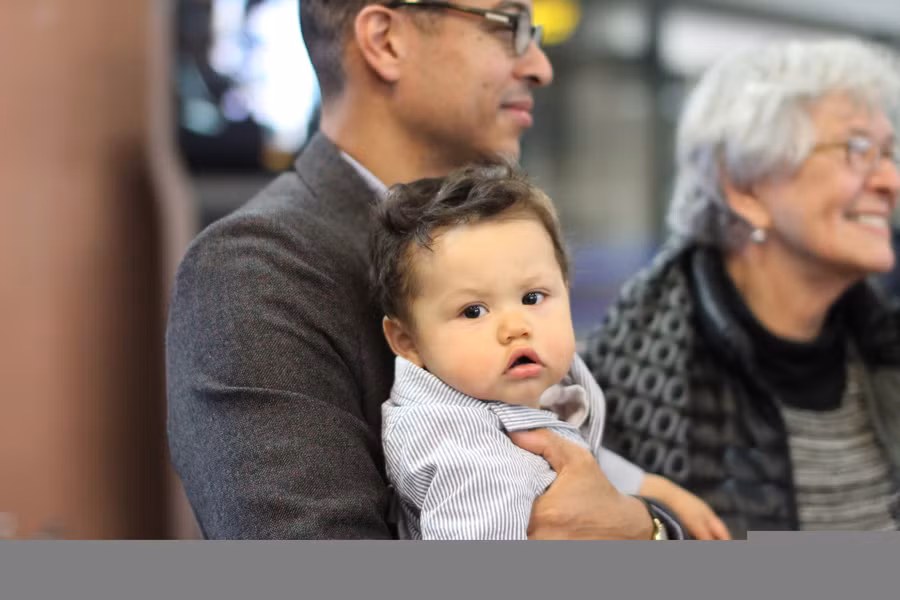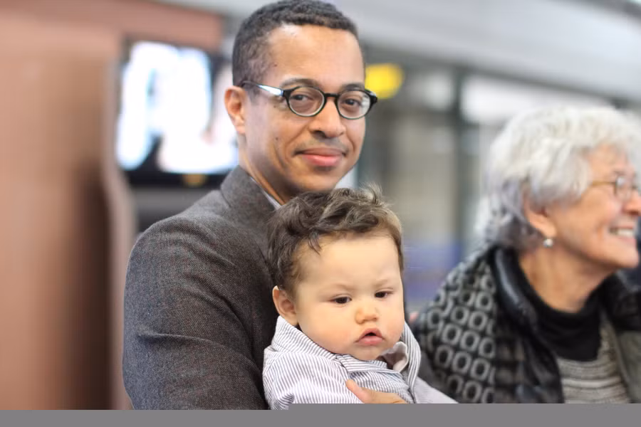 Chân dung nhà ngoại giao Clayton Bond, bạn đời của ngài tân đại sứ, với con trai trên tay