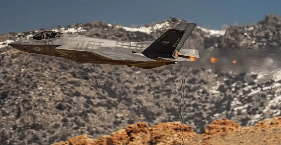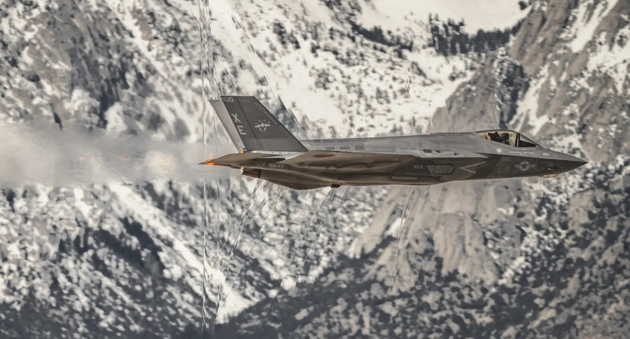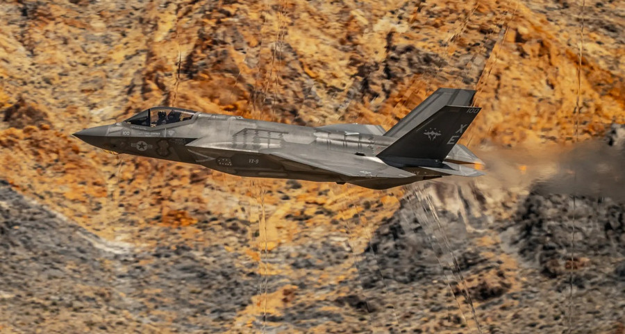 Chuyến bay huấn luyện của những chiếc F-35C thuộc Phi đội Đánh giá và Kiểm tra Hàng không Chín (VX-9) của Hải quân Mỹ được thực hiện ở miền nam California đã tạo ra những hình ảnh ngoạn mục với ánh sáng bị biến dạng quanh máy bay.