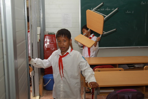 Các em cũng hết sức ý thức giữ gìn bàn ghế, dụng cụ học tập, vốn là quà của các nhà tài trợ đầu năm học