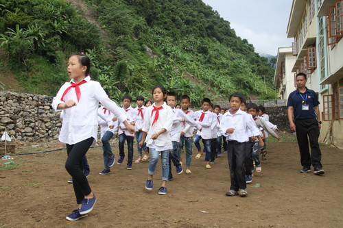 Ngay dưới chân núi, các em học sinh đã ổn định việc học tập, chăm học kiến thức và rèn luyện sức khỏe để cha mẹ yên tâm lao động sản xuất, ổn định cuộc sống