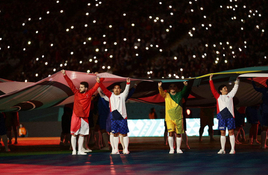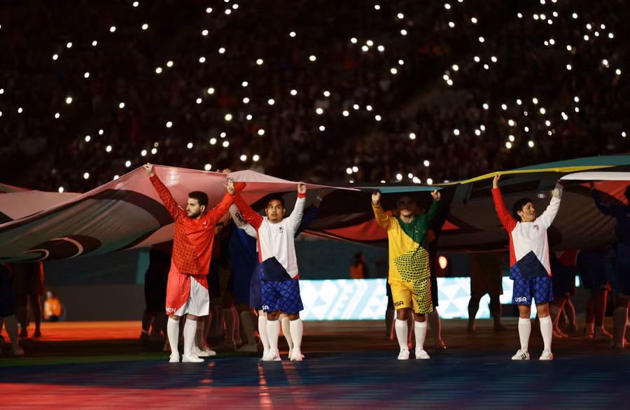 | Tất cả 32 quốc gia thi đấu tại World Cup nữ 2023 đều có đại diện hình ảnh trong lễ khai mạc. |