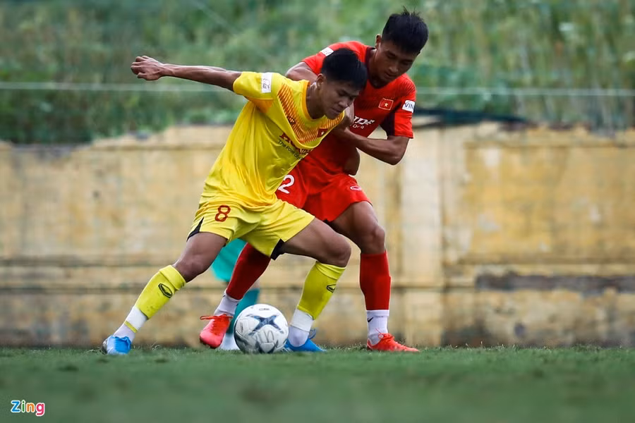 | Chiều 2/7, U22 Việt Nam có buổi tập cuối cùng trước khi các tuyển thủ trở về CLB. Ông Park chia đội hình làm 2, cho phép báo chí tham dự. Đây là màn kiểm tra dành cho các cầu thủ ít được thi đấu ở V.League, những tài năng tương lai của U22 Việt Nam hướng tới SEA Games. Trong số đó, Trần Bảo Toàn (áo vàng) là cái tên nổi bật. Tiền vệ sinh năm 2000 là tên tuổi hiếm hoi còn sót lại từ thế hệ U23 châu Á 2020. Anh đang chơi cho đội một HAGL ở V.League và bắt đầu được ra sân. Với mặt bằng hiện tại của U22 Việt Nam, Bảo Toàn là ngôi sao có số má. |