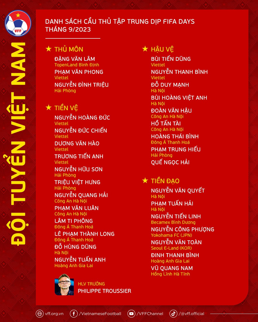 Đây là những gương mặt đã gây ấn tượng với HLV Philippe Troussier trong các trận đấu tại V.League 2023 và hứa hẹn sẽ gia tăng sức cạnh tranh trong đội hình đội tuyển Việt Nam thời gian tới.