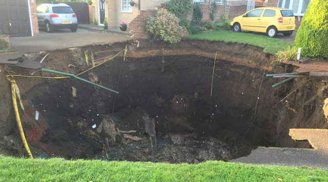 Các gia đình tại thị trấn Hertfordshire, ngoại ô London, đã bị sốc khi phát hiện một hố sụt khổng lồ bất ngờ hình thành trên con phố gần nhà họ.