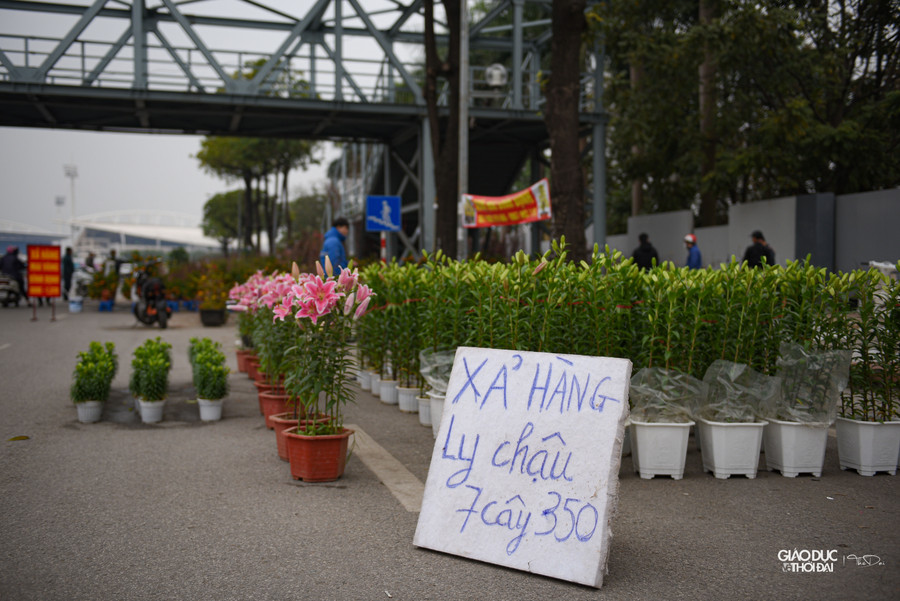 | Tại mặt đường Phạm Hùng, những gian hàng lan nhỏ nhỏ treo biển giảm giá 50%, chậu lan nhỏ thì giá khoảng 100 ngàn. |
