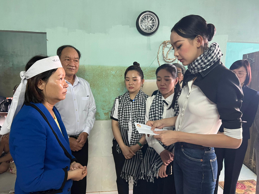 Nghe câu chuyện thương tâm này, nàng hậu không kìm được xúc động và bật khóc. Hoa hậu Bảo Ngọc gửi lời động viên đến gia đình với hy vọng sẽ tiếp thêm động lực cho mọi người vượt qua nỗi đau mất mát.