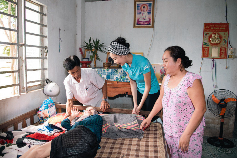 Bên cạnh đó, trong chuyến thiện nguyện lần này, nàng hậu đến từ Cần Thơ cùng mẹ mình đã nấu một bữa ăn mừng nhà mới cho hộ dân có hoàn cảnh đặc biệt khó khăn ở Tây Ninh.