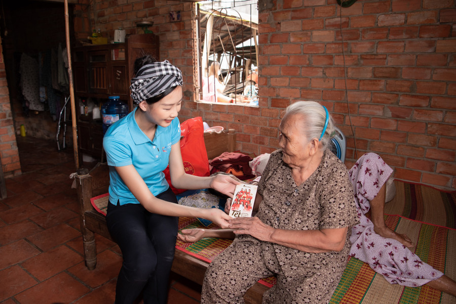 Ngoài ra, nàng hậu còn trao tặng một căn nhà Đại đoàn kết cùng các vật dụng gia dụng cho hộ gia đình ông Cháp Panh có hoàn cảnh đặc biệt ở Biên giới thuộc xã Hòa Hội, Châu Thành, Tây Ninh.